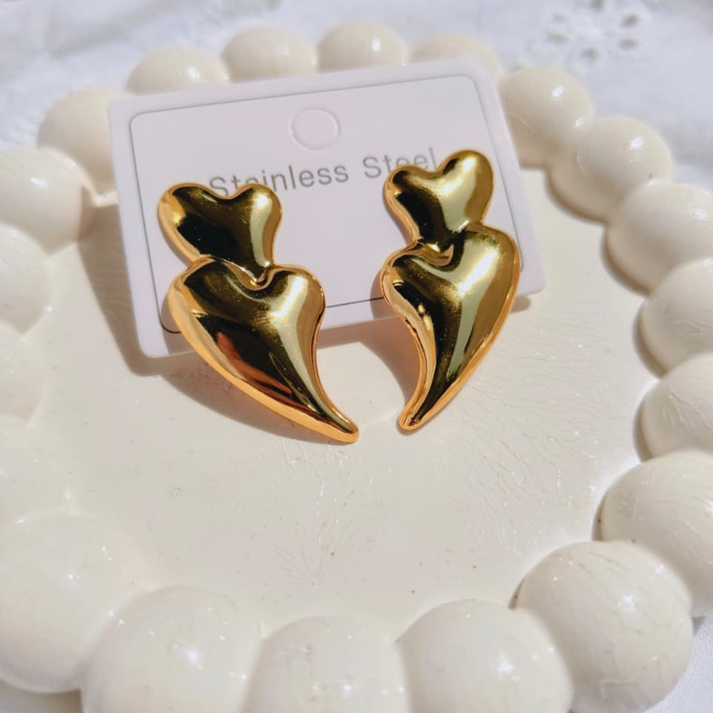 Trendy and youthful heart-shaped drop earrings with a modern twist. Perfect for date nights, casual outings or as a thoughtful gift.